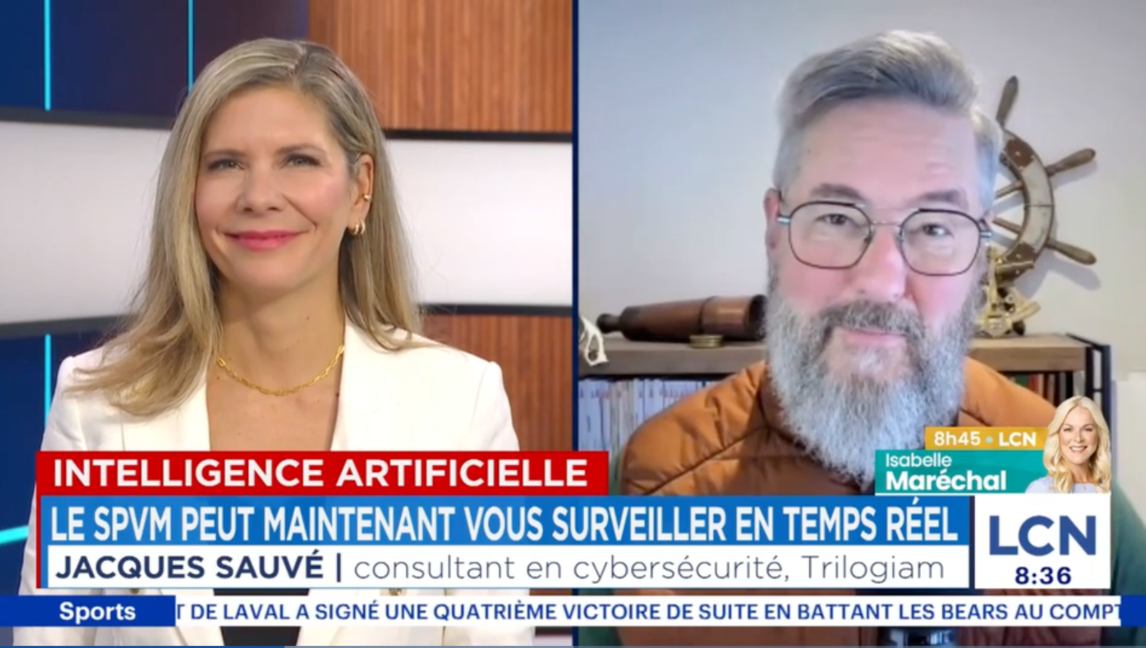 1 décembre 2025 | LCN 20h30 | Le SPVM surveille avec l’IA: «La vie privée, je n’y crois plus, ça n’existe plus» (L'entrevue commence à 08:44) | |